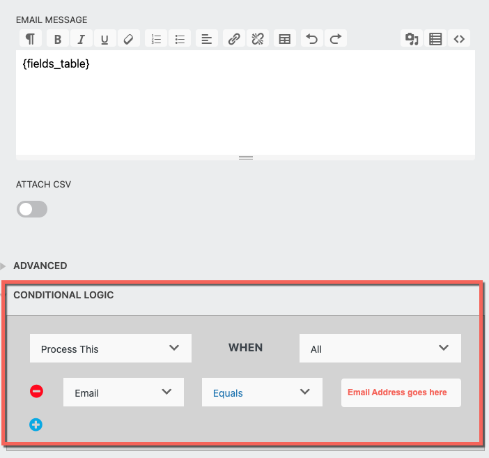 Once the Conditional Logic add-on is installed and activated it triggers conditional settings to appear for all email actions. These settings allow you to build queries that are then applied once the selected condition has been met. For more information, check out our guide on, How to Send Conditional Emails from WordPress.