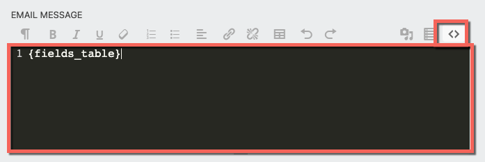 To format your message, click the “carrots” icon to change the rich text editor into an HTML editor. Doing so will give you the ability to create headers, add lists, apply tables, and much much more. For more information check out our article, on Customizing your Ninja Forms Email.
