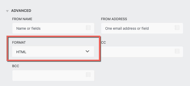 Most modern email clients use and prefer HTML messages over Plain Text that is why our default format is set to HTML. For more information on our email action, read through our guide on Sending and Email.