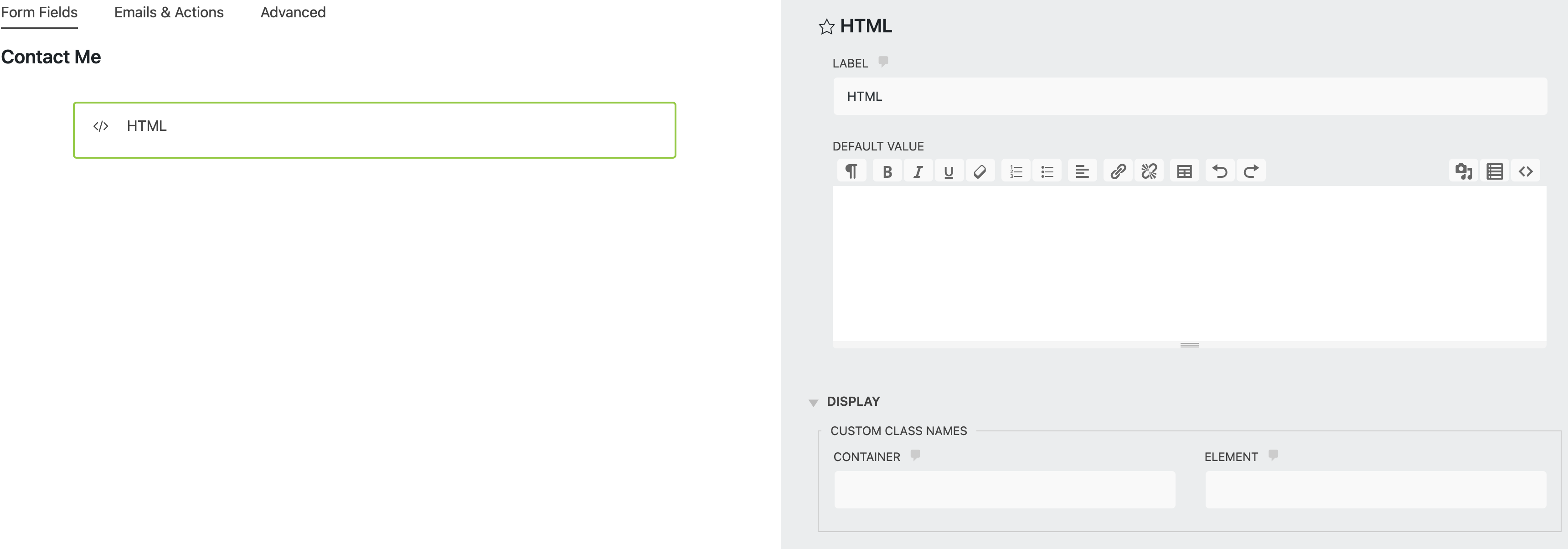 Once you add this field to your form, this is when the fun starts! With so many options, you can spice up your forms to your liking using the Summernote WYSIWYG editor for WordPress. Additionally, under the Display setting, you have the option to style your HTML field even further with custom class names.