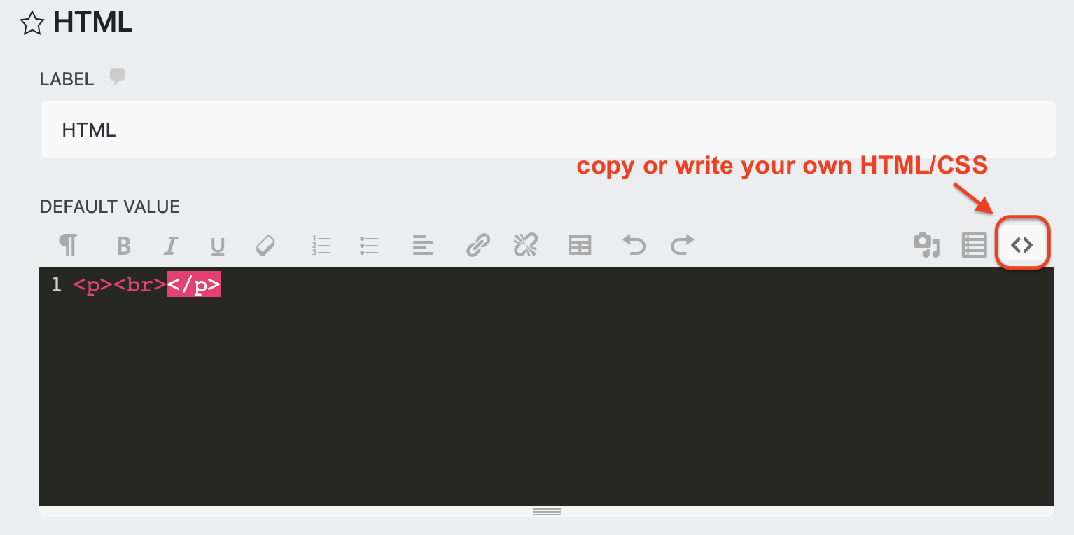 The HTML field allows you to include formatted text, introduce extra spacing, showcase links, or feature various media types. Regardless of your familiarity with HTML, you can tailor our HTML field using the built-in Summernote editor tool, or alternatively, you can insert your own code to customize it.