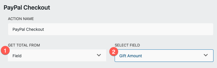 Once you set up your radio list field gift options, head to your PayPal Checkout action. Since the PayPal Checkout action won’t recognize a List field as a total source, you’ll need to create a calculation first so you can configure your settings for the PayPal Checkout action.