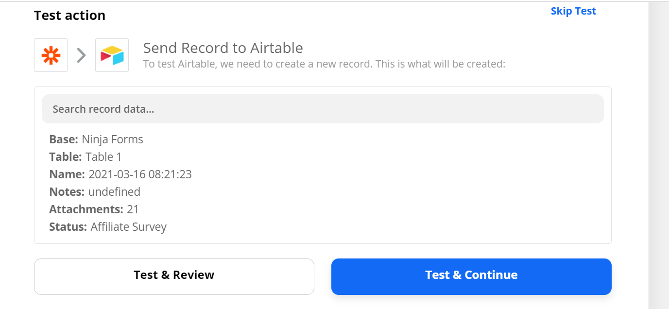The concluding step involves the activation of your zap. Once completed, each Ninja Forms submission will populate your Airtable.