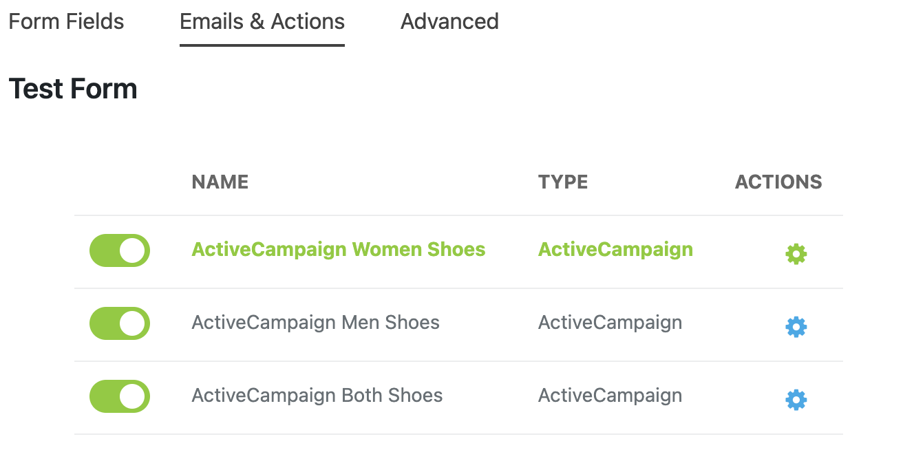 We created 3 ActiveCampaign actions on our WordPress form because users can select from three options. What you’ll need to do now is map each ActiveCampaign action to the correct email list.