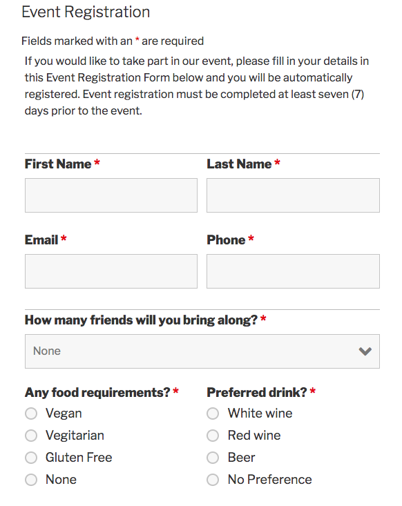 We’ll use the Event Registration template that comes default with Ninja Forms as brief example: