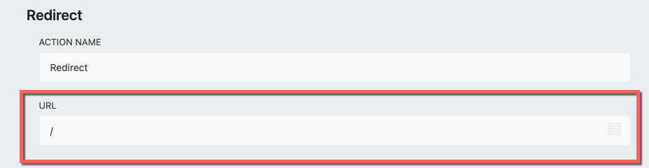 To redirect the user to the home page, simply add a “/” to the URL field.