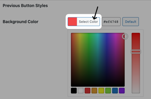 - Click on Select Color to choose a color for your Previous button’s Background Color. I’m going to choose red ( #ef4748).