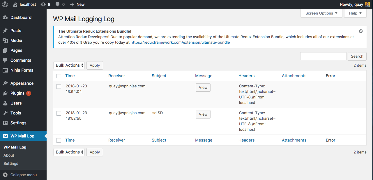 Mail loggers typically work by recording the activity of wp_mail(), the function we talked about in the How WordPress Email Works section above. If you submit a form or take any other action in another plugin that results in an email being sent, that email should be recorded by WP Mail Logging. How is this useful to you?