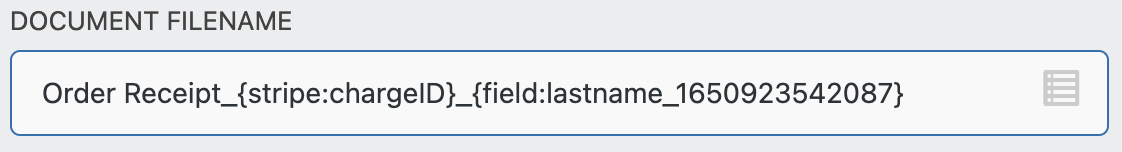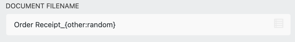 This setting lets you customize the name of the PDF order receipt for every customer using our merge tags. If your form does not contain payment and you would like to give your PDF receipt an order number, you can use our {other:random} merge tag that will generate a random ID.