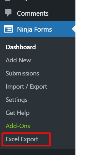 Once you have installed the Excel Export add-on, you will see the Excel Export option under the Ninja Forms Dashboard.