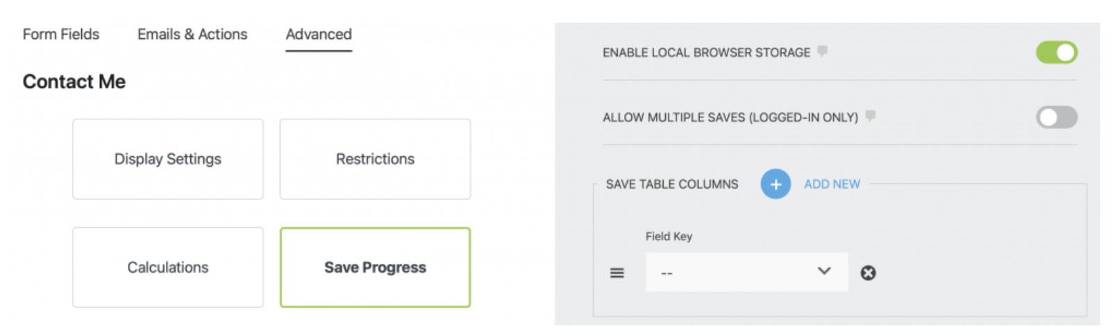 One of Ninja Forms’ must-have WordPress plugins is called Save Progress, and it offers much-needed assurance that your customers will never face the above situation. Whether they’re filling out a job application, feedback survey, or informational questionnaire, Save Progress allows them to do just that — save the form fields they’ve already completed and come back later.