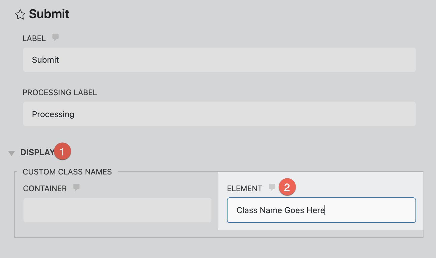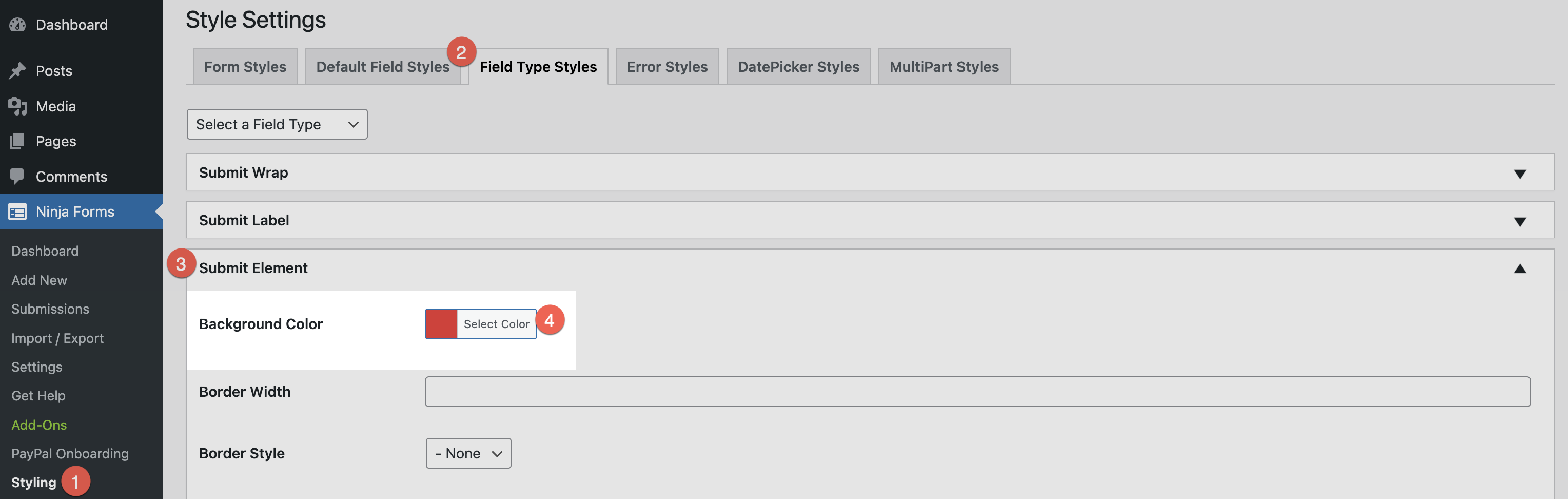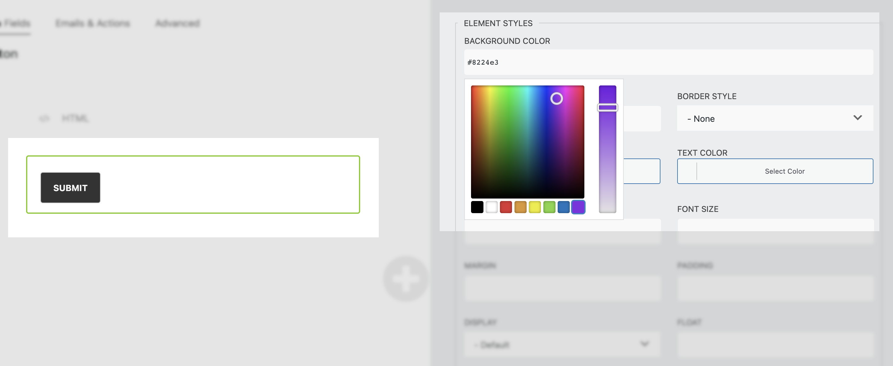 - Find the Submit button and open the Styles dropdown to reveal your styling options.