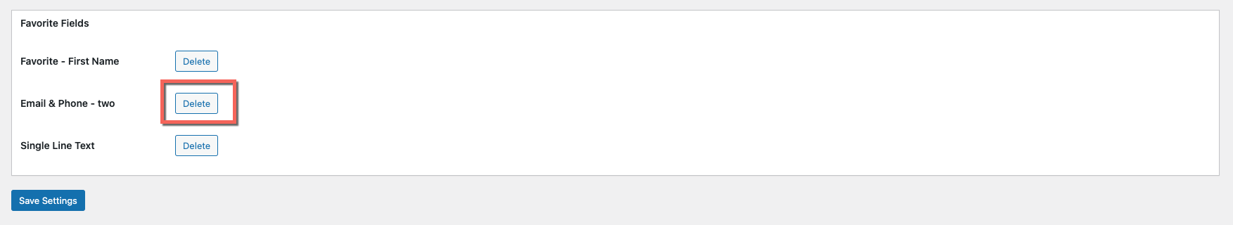 - If you have too many favorite fields, and you need to get rid of them. Navigate to the Ninja Form settings by going to Ninja Forms > Settings > Favorite Fields.