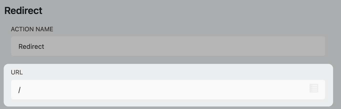 After that, add a website, page, or post URL to the URL field. This will determine where the user arrives after the form has been submitted. Unable to find the Redirect action? You can find the step-by-step guide to redirects here.