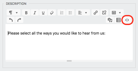 If the space between your description text and list options is a little crowded, there’s a quick fix. Click the < > icon in the rich text editor, and one line below below your text enter: