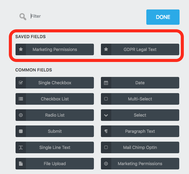 With a short one-time setup, the MailChimp GDPR features are simple to replicate and even easier to place on any form. With the fields duplicated and saved as described above, placing them on any WordPress signup form is reduced to a matter of seconds.