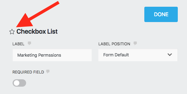Don’t want to do this for every last signup form on your site? You don’t have to. Click on each field, and in the upper left of the field settings you’ll see a star. Click it!
