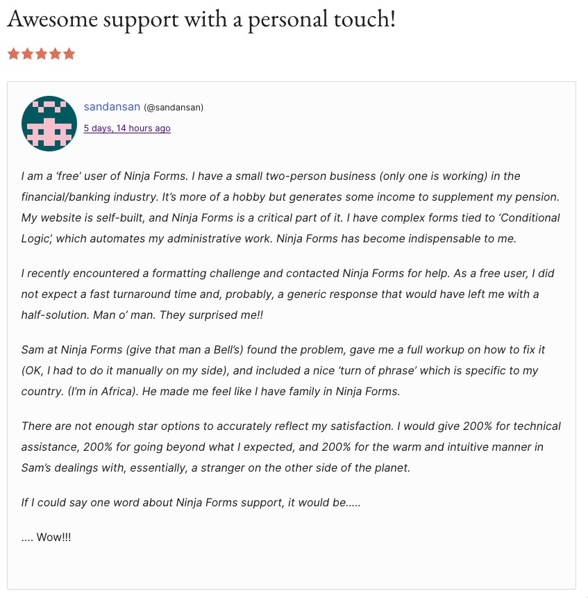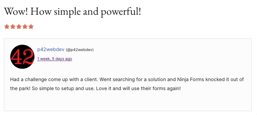 Are you a fan of Ninja Forms? Share your love and enthusiasm with the WordPress community on the Ninja Forms WordPress reviews page here.