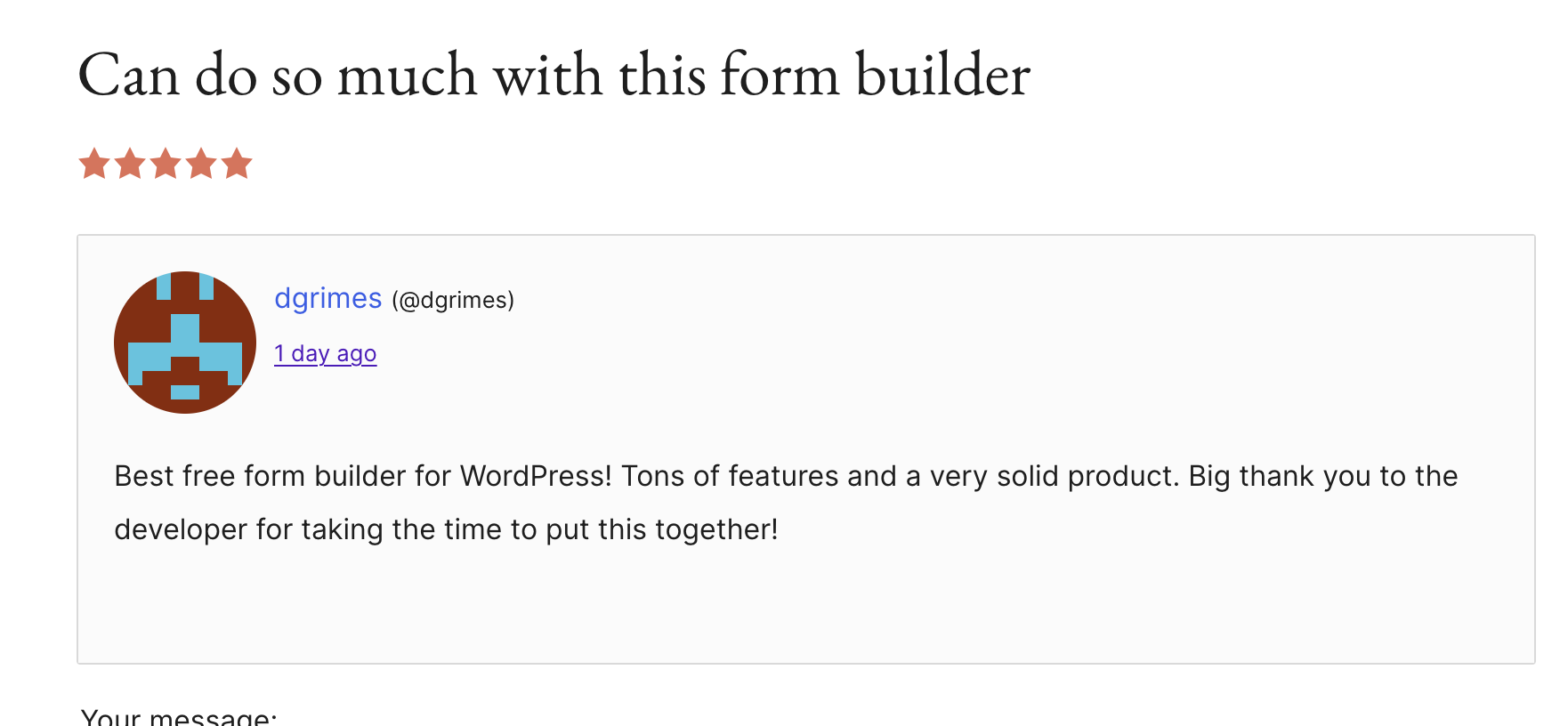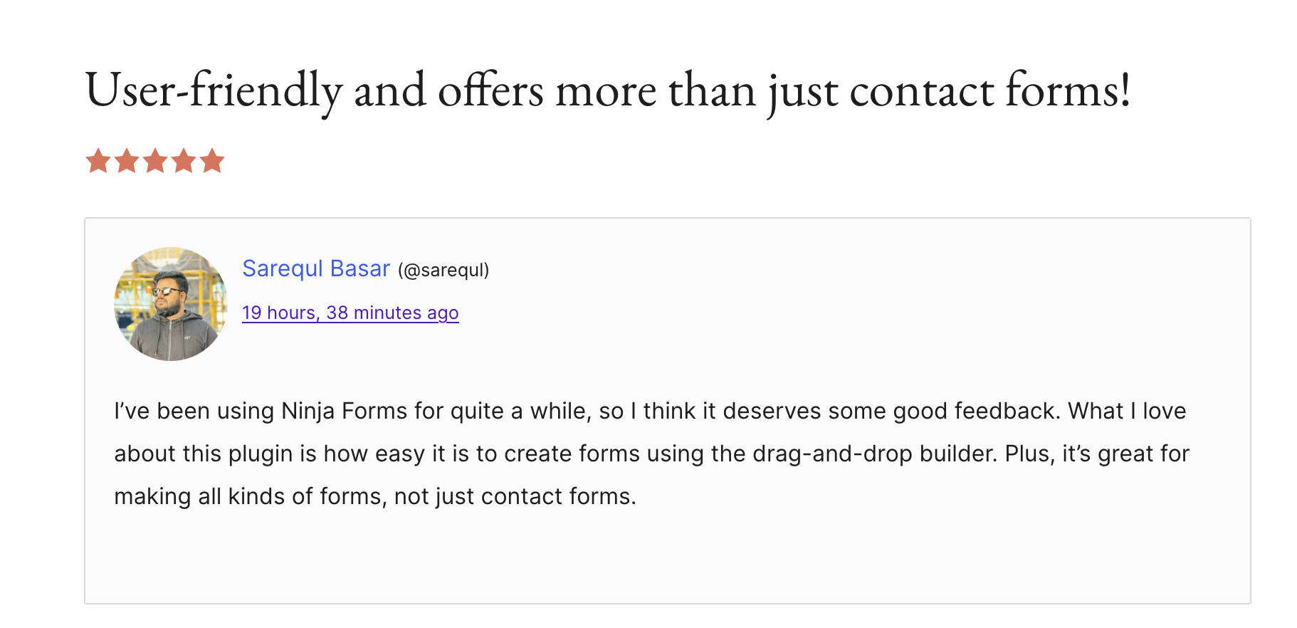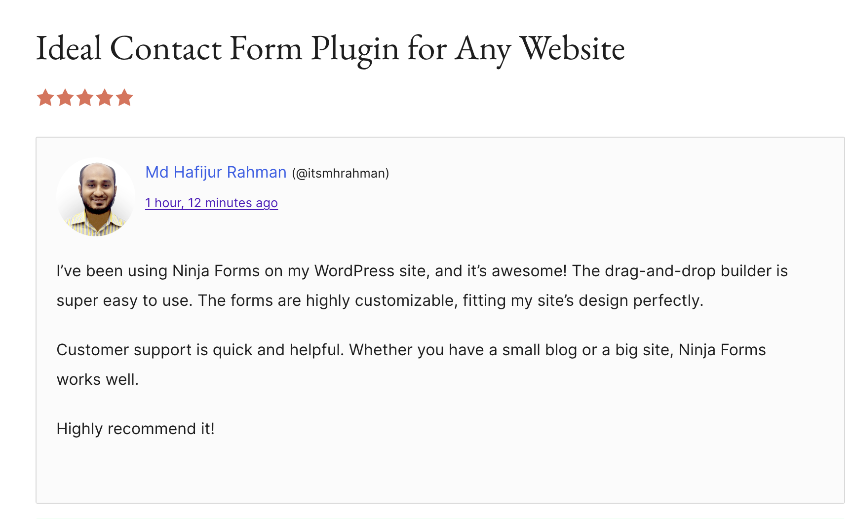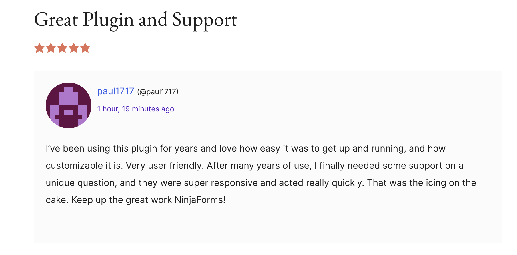 Are you a fan of Ninja Forms? Share your love and enthusiasm with the WordPress community on the Ninja Forms WordPress reviews page here.