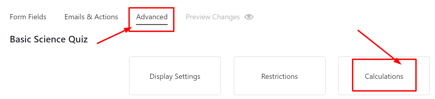 After scoring each list option, navigate to the Advanced tab and click on Calculations. Here is where we will create a calculation to determine your user’s score.