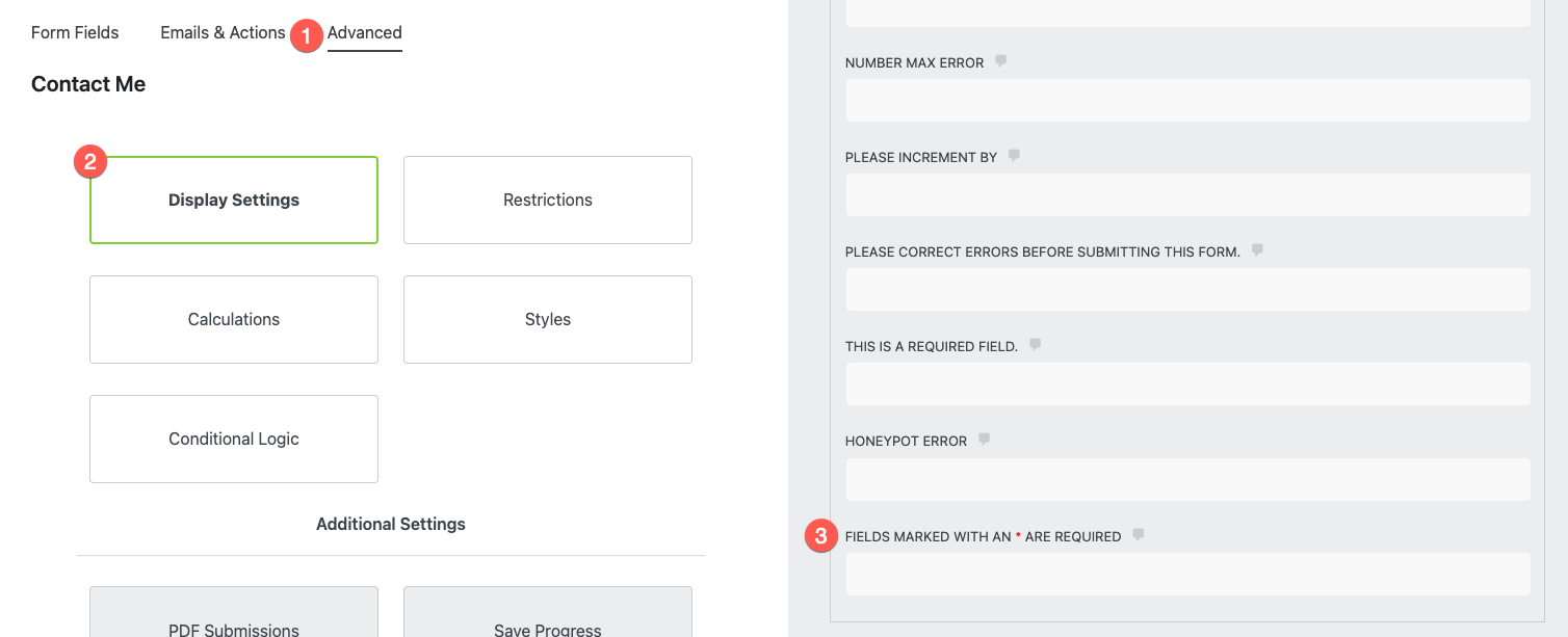 Not a code whisperer? No sweat. Just waltz into your form, strut over to the Advanced tab, hit Display Settings, and let the Advanced dropdown work its magic.