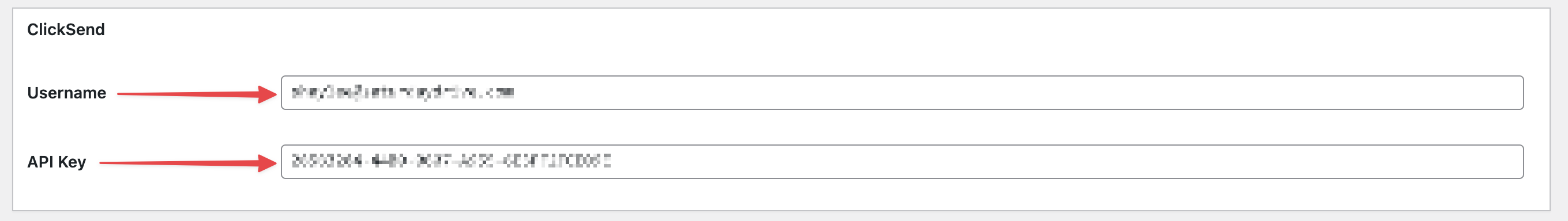 Return to the Ninja Form settings, and paste the Username and API Key into the ClickSend settings.