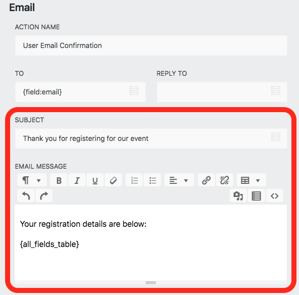 Design away! Learn more and find a full walkthrough of the rich text editor in our Learn How to Easily Customize Your Ninja Forms Email! article. Don’t just send email with WordPress forms, send them in style!