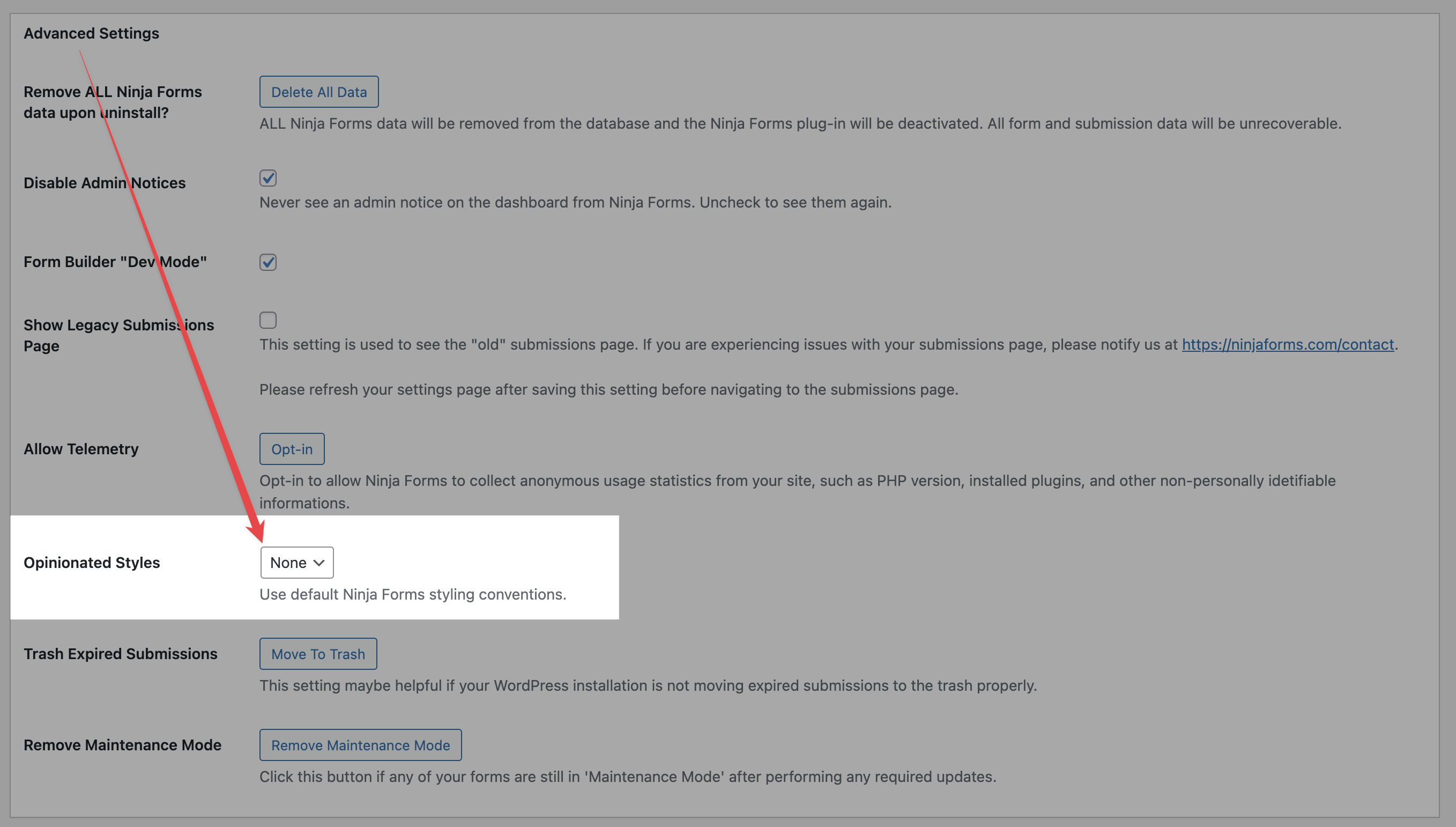 Our Opinionated Styles setting makes use of specialized CSS classes in case your theme hasn’t taken the care needed for HTML elements. Therefore, if you disable the setting, you are left with the default Checkbox and Radio field styles.