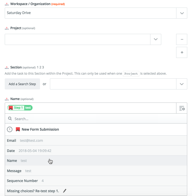 Now just map the fields of your form to the Asana action specifics you want to populate: