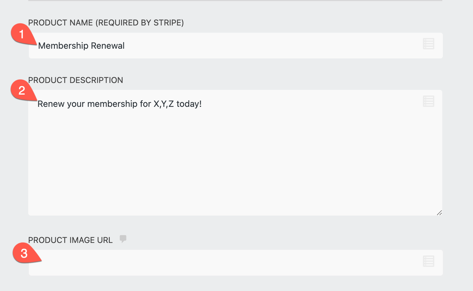 To include product details on the Stripe checkout page – such as a product name, description, or image – do so here: