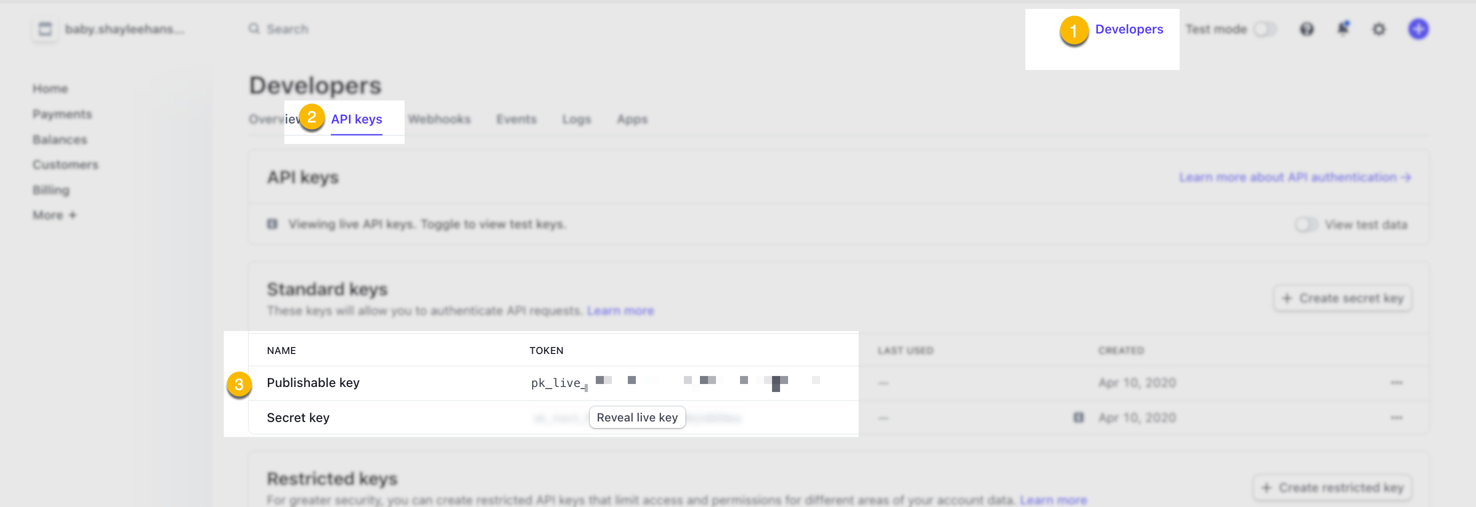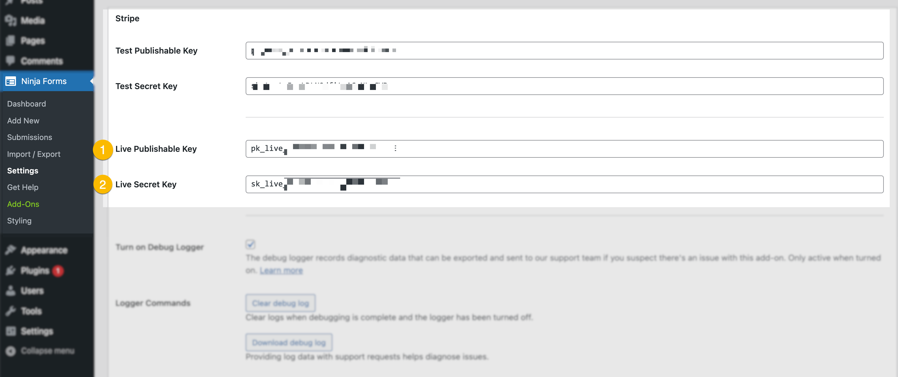 Before you can start collecting payments, you need to connect Stripe to Ninja Forms first. You will need your Stripe publishable key and secret. To access those credentials, log in to your Stripe account.