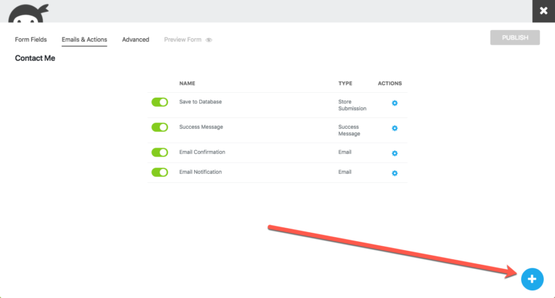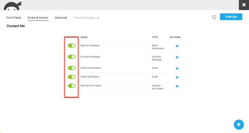 Actions can be enabled or disabled using the toggles from the Emails and Actions tab of the builder.