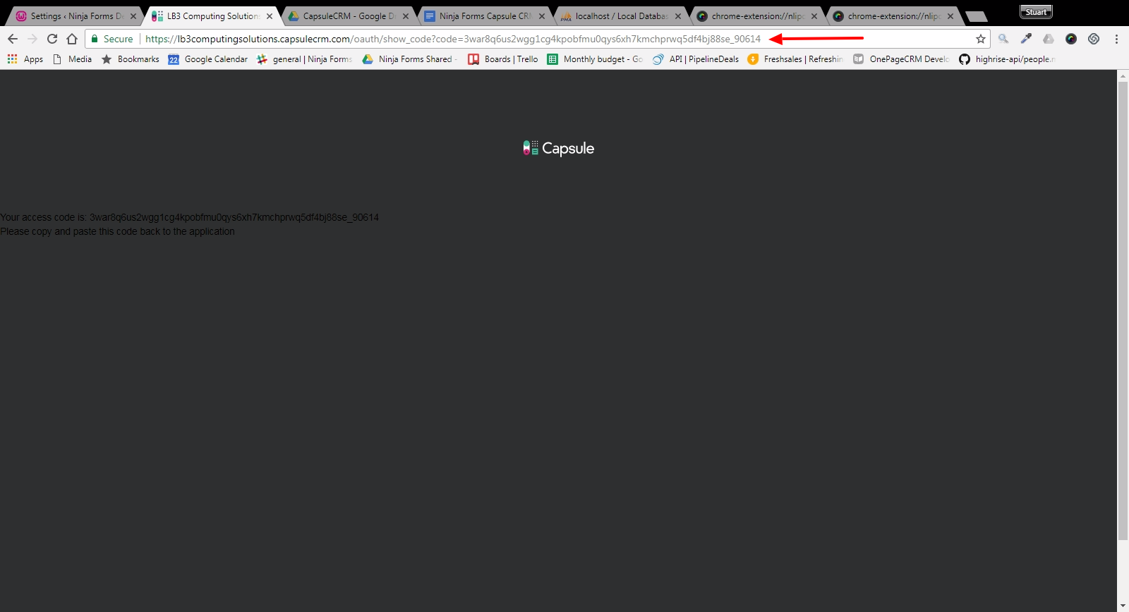 From your Ninja Forms Capsule Settings, click on the button “Get Authorization Code”