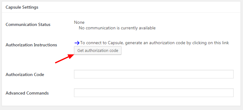 Capsule’s new version uses an authorization process called Open Authorization. It is a secure way of allowing access to your Capsule account without having to enter your login credentials into WordPress. In this process, you will be asked to log into your Capsule account, where you will be asked to grant permission. This permission will be given in the form of an incredibly long authorization code, which is unique to your account and valid for only a short while. This code, when entered into your WordPress dashboard, is what will let you connect to Capsule, all without ever having to divulge your Capsule credentials. Here is the step by step process.