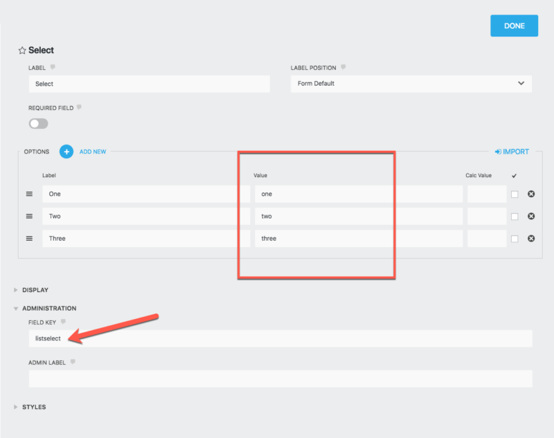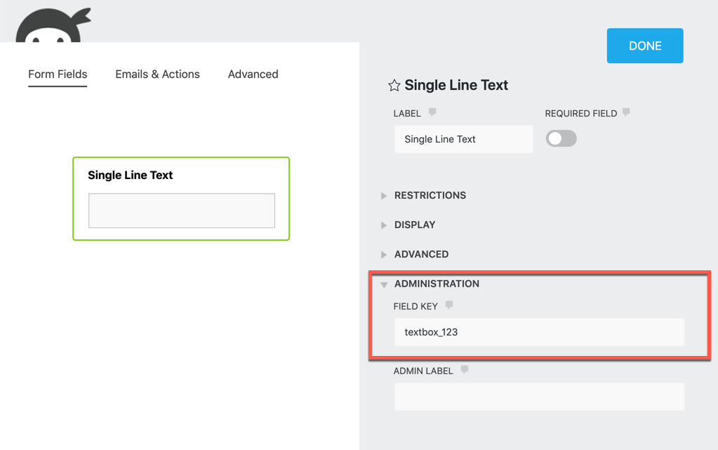 To populate text fields, the key is represented by the field key, which can be found under the Administration section of the field settings.