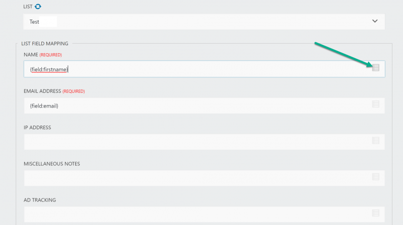 With the action added, you can select which list you want the user data sent into. Your action will then display the fields within your account for that list. Easily pair your WordPress forms fields with your list fields with the click of a button.